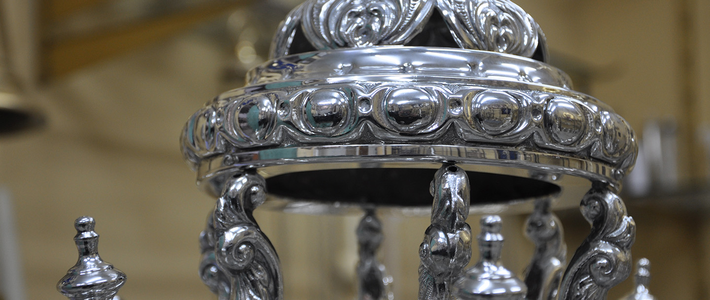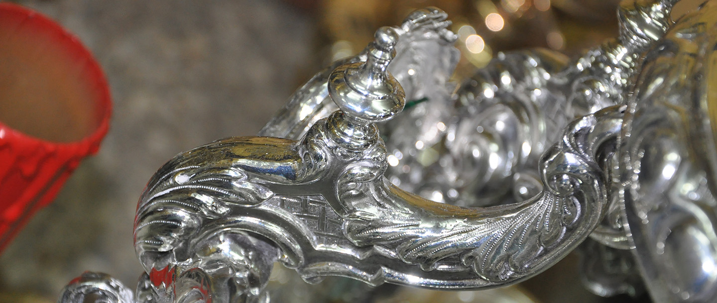 Realizamos todo tipo de labores en restauración de tronos, niquelados, fundición de bronce, restauración de metales, baños de oro, plata y cobre.